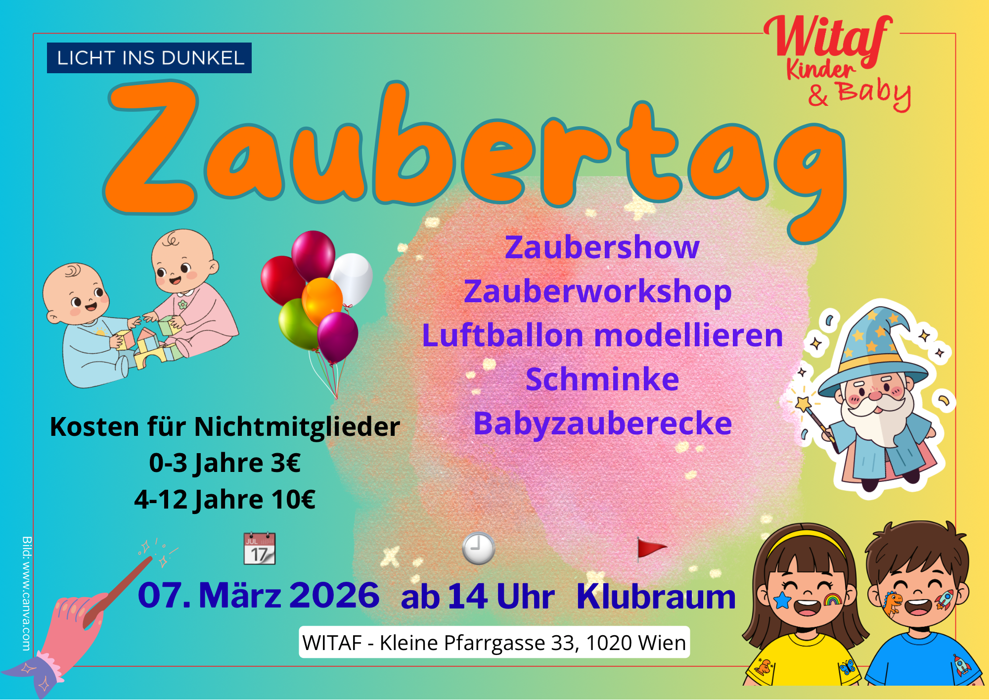 Leuchtende Kinderaugen garantiert! ✨ Wir freuen uns auf einen tollen Tag mit euch. Babys 👶 0-3 und Kinder 👧👦3-12 Jahren sind 💗 willkommen. Auch für die Kleinsten gibt es ein magisches Programm 🪄